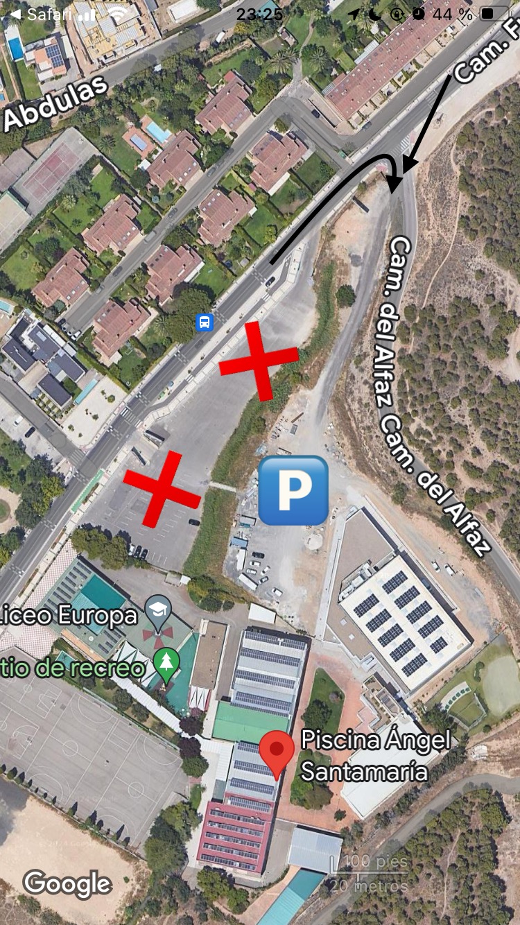 Entrada por el parking de tierra, encima del parking del colegio Liceo Europa.